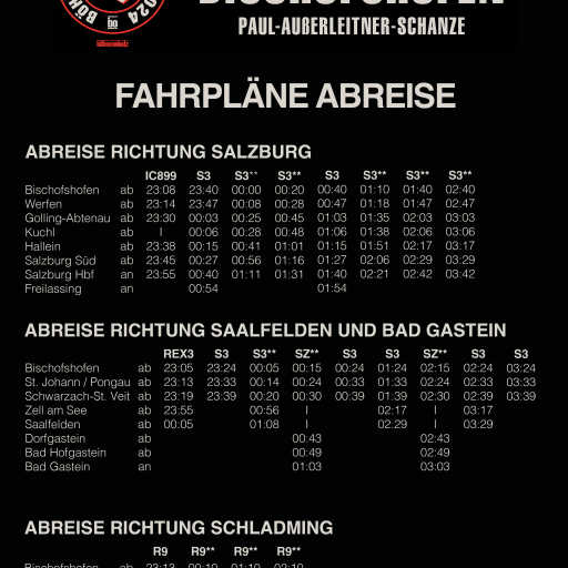 Bischofshofen ist leicht mit dem Auto oder öffentlichen Verkehrsmitteln zu erreichen. Im Sinne einer Co2 neutralen Anreise und zur Schonung der eigenen Nerven empfehlen wir eine Anreise mit den öffentlichen Verkehrsmitteln. Das Eintrittsticket gilt an Veranstaltungstagen auf sämtliche Bus- und Bahnlinien im Land und der Stadt Salzburg als Öffi-Ticket!